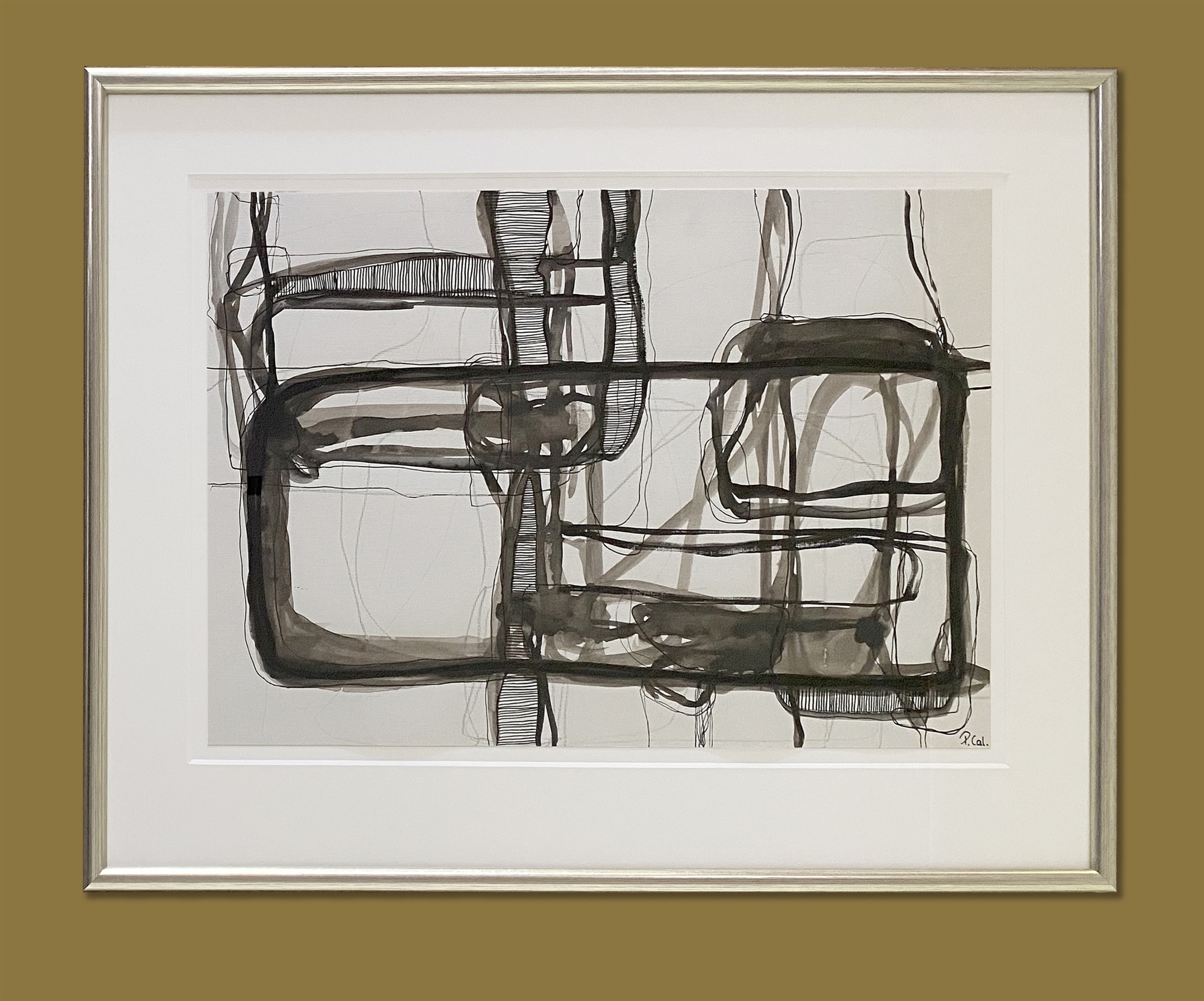 Akryl/tusch på papir af Pernille Calundan